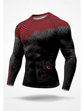 Homme Lion Rayé À Motif Animal Géométrie T-shirt de compression T-shirt de course Printemps Automne Impression 3D manche longue Séchage Rapide Compression Power Flex Évacuation de l'Humidité Respirant