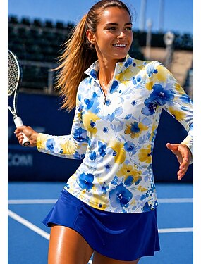 Femmes Géométrique T-shirt de sport Chemise de tennis Haut de tennis manche longue Fermeture éclair Floral UPF50+ Résistant aux UV Haute élasticité Évacuation de l'Humidité Respirant Volley-ball