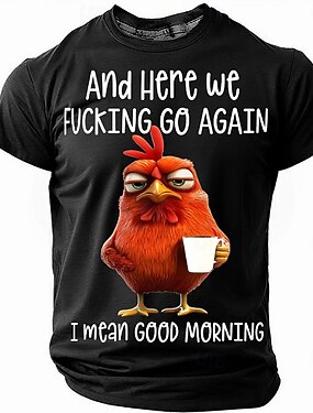 T-Shirt Graphique pour Hommes Poulet Grincheux Amusant 'C'est Reparti Pour Un Tour Je Veux Dire Bonjour' Tee Humor De Vie
