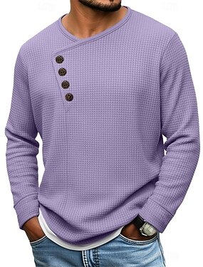 Homme Chemise Chemise gaufrée Chemise popover Chemise habillée Chemise Décontractée Noir Blanche bleu marine Violet manche longue Uni Asymétrique Col en V Formel Mariage Vêtement Tenue Élégant Mode