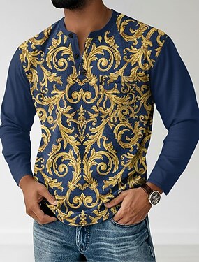Homme Graphique Paisley Chemise Henley T-shirt manche longue Rétro Vintage Occasionnel Occasionnel Printemps Automne Toutes saisons Noir Blanche Bleu Orange Henley T-shirt Henley