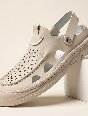 Sandales de pêcheur beiges pour homme, chaussures décontractées à bout fermé avec bride ajustable, idéales pour la marche, les voyages, les loisirs de plein air, les escapades de week-end, le confort quotidien en été et un style décontracté chic.