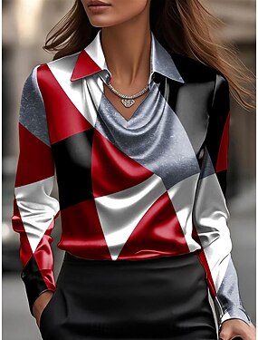 Robes Chemises Femmes Hauts Habillés Chemises de Travail Formelles Imprimé Graphique Géométrique Élégantes Chic Décontractées Manches Longues Col in Cowl Tops Réguliers Travail Fête Soirée