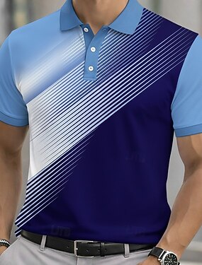 Homme Géométrique Ligne Polo Manche Courte Polos Chemises à Col Vêtement décontracté de travaile Athleisure Boutons Printemps & Été Bleu Vert
