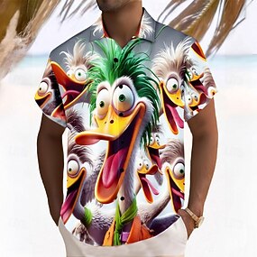 Homme Animal Drôle Canard Chemise Chemise Décontractée Chemise Boutonnée Manche Courte Mode Décontractée Extérieur Vêtements de rue Vacances Été Printemps Col Rabattu Impression 3D chemises à col Gris