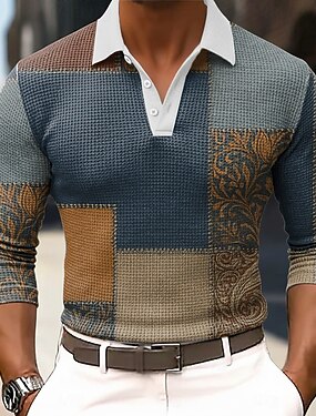 Homme Géométrique Bloc de Couleur Chemises Polo Gaufre manche longue Polos Chemises à Col Vêtement décontracté de travaile Affaires Tenue de travail Tenue quotidienne Boutons Printemps Automne Hiver