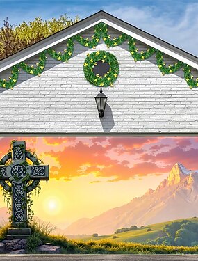 Fête de la St. Patrick tapisserie Couverture de porte de garage Grande suspension Croix celtique Mignon 3D Paysage Soirée Outdoor Vacances Arrière-plans de prise de vue Yard Décoration d'intérieur