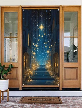 Tapisserie murale « Nuit étoilée », escalier magique illuminé, étoiles dorées oniriques, bannière esthétique pour porche, décoration de porte d'entrée