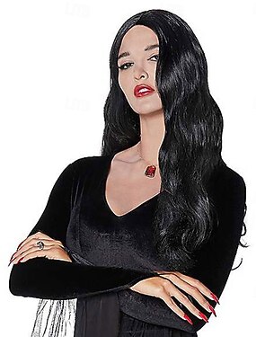 Perruque synthétique noire lisse – coiffure de déguisement d'Halloween pour femme, idéale pour le cosplay et les fêtes &style gothique de tous les jours
