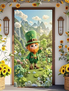 Fête de la St. Patrick Affiches Couverture de porte Bannières extérieures pièce d'or Trèfle Mignon 3D Soirée Dortoir Chambre d'adolescents Résidence universitaire Chambre d'amis pour hommes dans une