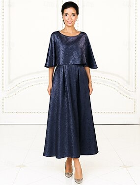 Robe de fête en A longueur de cheville robe cocktail robe invitée au mariage robe mère de la mariée manches ¾ col ras du cou élégante vintage formelle avec couleur unie