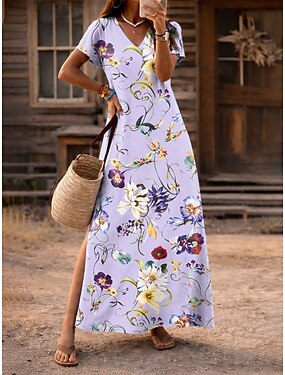 Ligne A Mi-long Robe de Soirée Robe de Cocktail Robe d'invité de mariage Robes pour invités de mariage Quotidien Manche Courte Col de chemise Bal de promo Mariage avec Imprimé floral