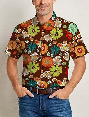 Rétro Vintage Hippie Années 1970 Chemise Manches courtes Hippie Fleuri Rétro Déguisement Homme Festival de Musique Soirée Tenue quotidienne Adulte Chemise Printemps & Été