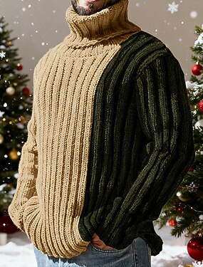 Homme Pull de Noël Chandails de Noël Col roulé Pull pull de Noël Côtelé Torsadé Tricoter Découpé Tricoté Bloc de Couleur Col roulé Élégant Basique Extérieur Quotidien Vêtement Tenue Automne Hiver Kaki