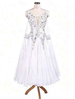 Danse de Salon Robe Strass Plis Épissage Femmes Soirée Entraînement Performance manche longue Haut Spandex Polyester