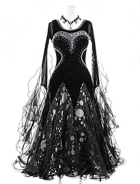 Danse de Salon Robe Strass Plis Épissage Femmes Soirée Entraînement Performance manche longue Haut Spandex Polyester