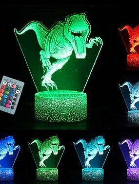 Dinosaure jouets 16 couleurs 3d illusion lampe de bureau avec télécommande veilleuse pour enfants cadeaux chambre chevet décorations
