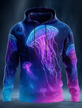 Homme Aurore Champignon Sweat à capuche Sweatshirt Mode Frais 3D manche longue Col ras du cou Maison Vêtements de rue Soirée Violet 3 Violet Violet 2 Cordon de serrage Automne Hiver Designer S M L XL