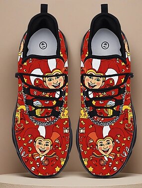 Baskets de carnaval amusantes pour hommes – motifs de masques et de bouffons colorés, idéales pour Mardi gras, les défilés de carnaval et les soirées dansantes