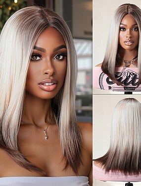 Perruque Synthétique Droit crépu Lisse naturel Raie au milieu Coupe Asymétrique Fabriqué à la Machine Perruque 18 pouces A1 Cheveux synthétiques Femmes Au Milieu Classique Dégradé de couleur Blond