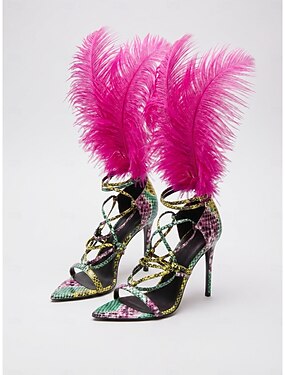 Sandales à talons hauts rouges à plumes pour femmes – escarpins sexy à brides pour boîte de nuit, soirée &soirée glamour