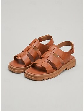 Sandales gladiateur marron pour femme – modèle classique à brides de style romain, sandales plates d'été idéales pour la marche et les voyages. &vêtements décontractés