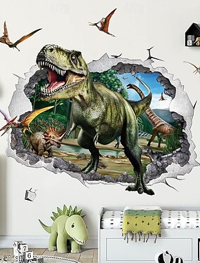 Tapisserie murale jungle 3D effet mur brisé, bannière de porte, décor pour chambre d'enfant, salle de jeux de garçon, fond de fête d'anniversaire