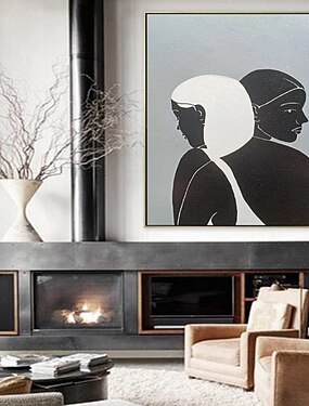 Tableau à l'huile abstrait noir et blanc, réalisé à la main, silhouette de femme, art abstrait contemporain, peinture texturée, décoration murale pour la maison