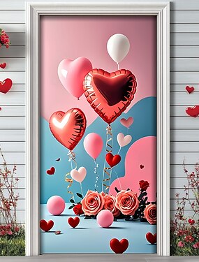 Saint Valentin Affiches Couverture de porte Bannières extérieures Mignon Moderne 3D Soirée Dortoir Résidence universitaire Arrière-plans de prise de vue Porte d'Entrée Décoration d'intérieur