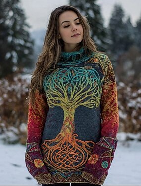 Femmes Pull Vacances ancien Quotidien Géométrique Paisley Côtelé Col roulé Tricoté Imprimé manche longue Hauts Réguliers Tricoter Extérieur Quotidien Week-end Rouge Bleu Automne Hiver