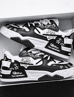 Baskets homme en similicuir noir et blanc au design sportif – chaussures confortables et tendance pour les journées décontractées, les voyages et les sorties du week-end