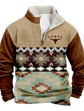 Homme Cowboy Sweat-shirt Sweat-shirt quart de fermeture éclair manche longue Sweat-shirt Mao Quarter Zip Décontractées Millésime Rétro 3D effet Vacances Sortie Vêtement de rue Demi-zip Automne Hiver