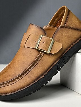 Mocassins décontractés pour homme en cuir haut de gamme, élégants avec bride, parfaits pour les événements de jour et les sorties en vacances.