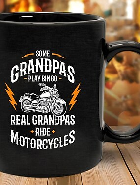 Mug humoristique « Certains papys jouent au bingo, les vrais papys font de la moto », tasse à café en céramique noire, cadeau idéal pour les grands-pères passionnés de moto, parfait pour les pères ou