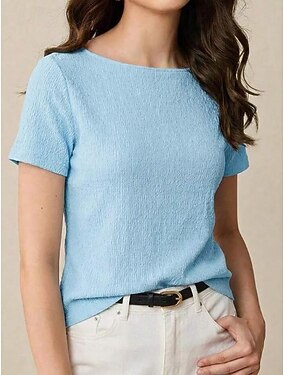 Femmes T-shirt Texturé Couleur Unie Élégant Mode Occasionnel Manche Courte Col ras du cou Hauts Réguliers Occasionnel Quotidien Sortir Bleu Rose Claire Vin Café Été Printemps