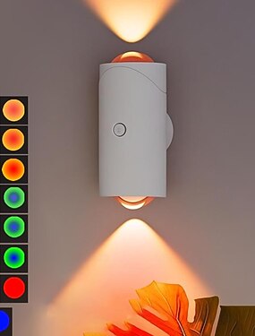 Applique murale LED sans fil avec 7 couleurs changeantes, détecteur de mouvement, batterie rechargeable 1500 mAh, idéale pour chambre, chevet, couloir, cour ou entrée.