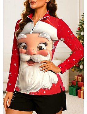 Noël Femmes Père Noël Impression 3D Drôle Sweat-shirt polo Hauts Chemise T-shirt de sport manche longue Imprimé Quart de zip Sweat UPF50+ Résistant aux UV Protection UV Élastique Respirant