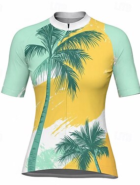 Femmes Maillot de cyclisme Fleurs tropicales Palmier Manche Courte Cyclisme Maillot Top avec 3 poches arrière Séchage Rapide Évacuation de l'Humidité Respirant Des sports Jaune Vêtement Tenue