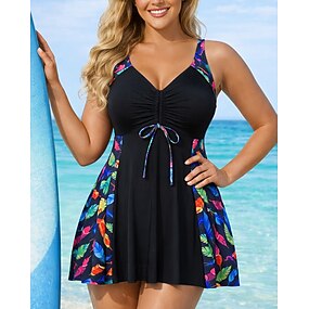 Femmes Maillots de Bain Une Pièce Monokini Jupe Maillot de bain Contrôle du ventre Taille haute Mince Dos nu Élégant Vacances Fleuri Graphique Col en U Sans manches Maillots de bain