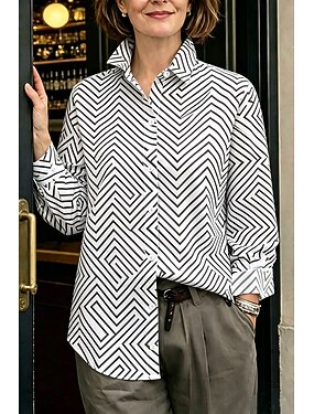 T-shirt femme à manches longues col rond tunique graphique géométrique rayé vintage élégant regular hauts quotidiens imprimé blanc bleu violet orange marron automne préautomne