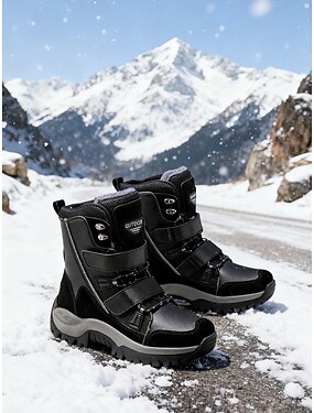 Bottines de neige doublées de polaire pour femme – Chaussures d'hiver chaudes et décontractées à enfiler avec fermeture velcro pour les voyages et les promenades en plein air
