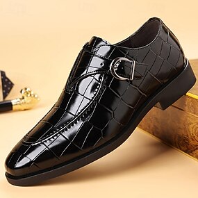 Chaussures à boucle pour homme en similicuir noir - design élégant en cuir façon crocodile avec boucle, parfaites pour les événements formels, les réunions d'affaires et les mariages.