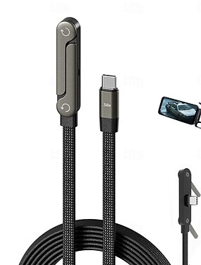 Câble USB-C vers Type-C 240 W, tête pivotante à 180° avec support pour téléphone, câble de charge rapide tressé en nylon pour MacBook, iPhone 17/16/15 Pro Max, Samsung S26 Ultra Plus, iPad Pro et