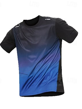 Homme Dégradé T-shirt de course T-shirt de compression Été Manche Courte Séchage Rapide Compression Évacuation de l'Humidité Entraînement en salle Entraînement actif Exercice Bleu Gris foncé Noir