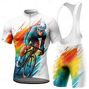 Homme Maillot et Cuissard Avec Bretelles Velo Cyclisme Manche Courte VTT Vélo tout terrain Cyclisme sur route Été Bleu Noir Rouge Graphique Dégradé Drôle Vélo Coussin 3D Séchage Rapide Poche Arrière