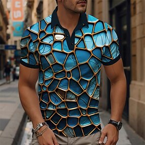 Homme Géométrique Ligne Polo Manche Courte Polos Chemises à Col Vêtement décontracté de travaile Extérieur Athleisure Tenue quotidienne Impression 3D Boutons Été Bleu Violet Vert