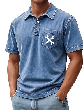 Homme Graphique Chemise délavée à l'acide 100% Coton Manche Courte Polos Revers Occasionnel Athleisure Avec Poches Impression 3D Boutons Printemps & Été Bleu Marron Vert