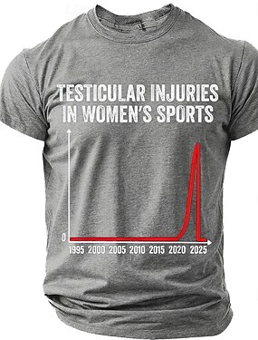 Blessures testiculaires chez les hommes dans le sport féminin, graphique, satire politique, humour, commentaire social conservateur, t-shirt controversé, graphisme, décontracté, manches courtes,