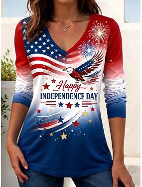 T-shirt patriotique pour la Journée de l'Indépendance pour femmes impression graphique du drapeau élégant classique décontracté à manches courtes en V tops réguliers quotidiens noir rouge vert été