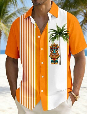 Homme Cocotier Plantes Tropicales Tiki Chemise hawaïenne Chemise Boutonnée Chemise Aloha Manche Courte Hawaïen Vacances Fête Tenue de plage Été Printemps Col Rabattu Impression 3D Chemise en lin Bleu
